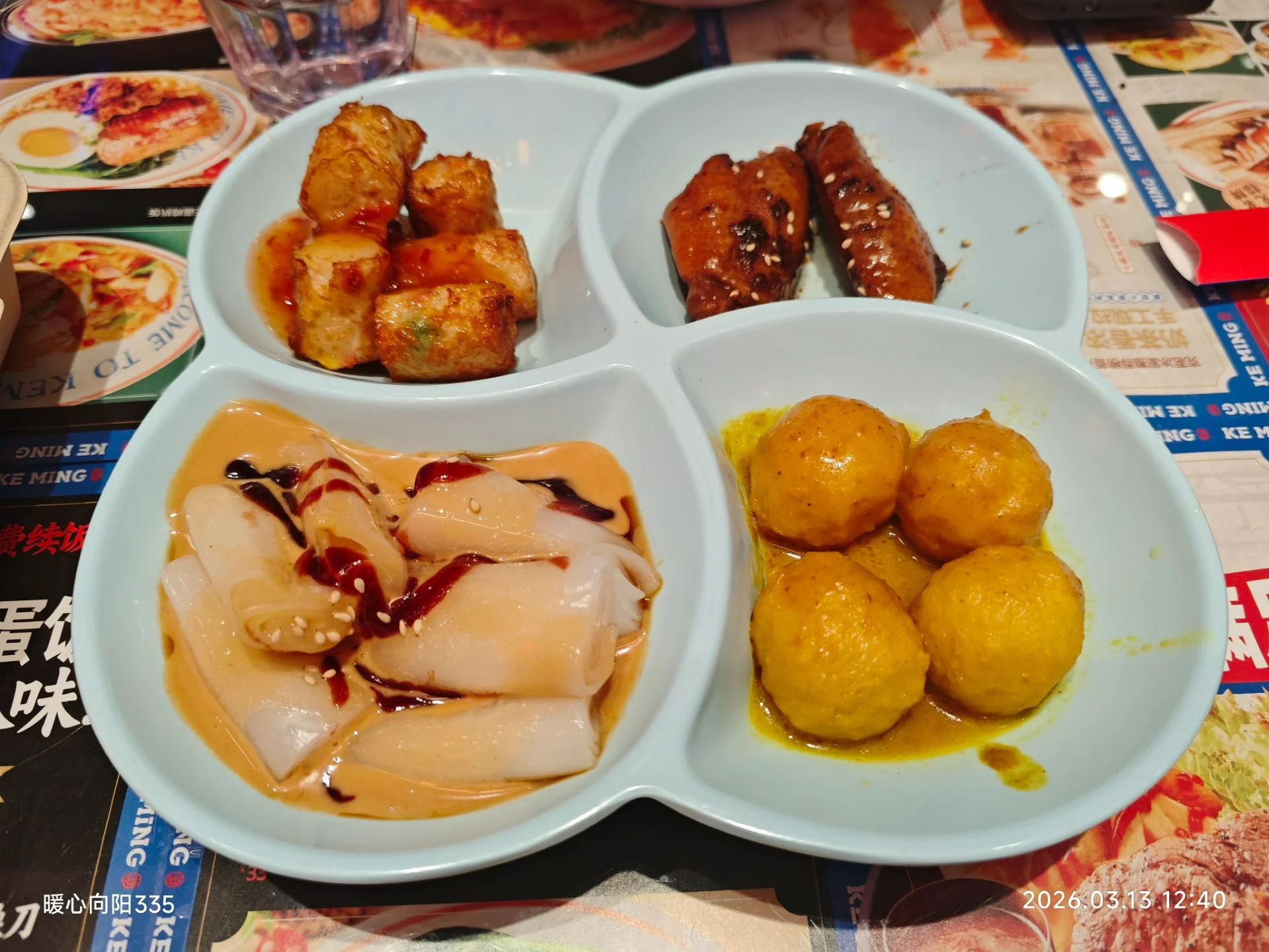 今天中午放学和另外两个朋友去我们这的万象汇玩了一圈,之前一直看到这家克茗冰室的港式餐厅,和他们一起去吃了一下,刚开始我们觉得量不会太大,我就问他们小食吃不吃,点了鸡蛋仔和拼盘,等我们各自的饭面上来就发现不对劲了,和我以前吃的死贵的港餐不太一样,这量还可以哇,等我们吃完各自点的主食都要饱了,他们两个都说高估了自己的胃袋,最后我们都吃撑了。
