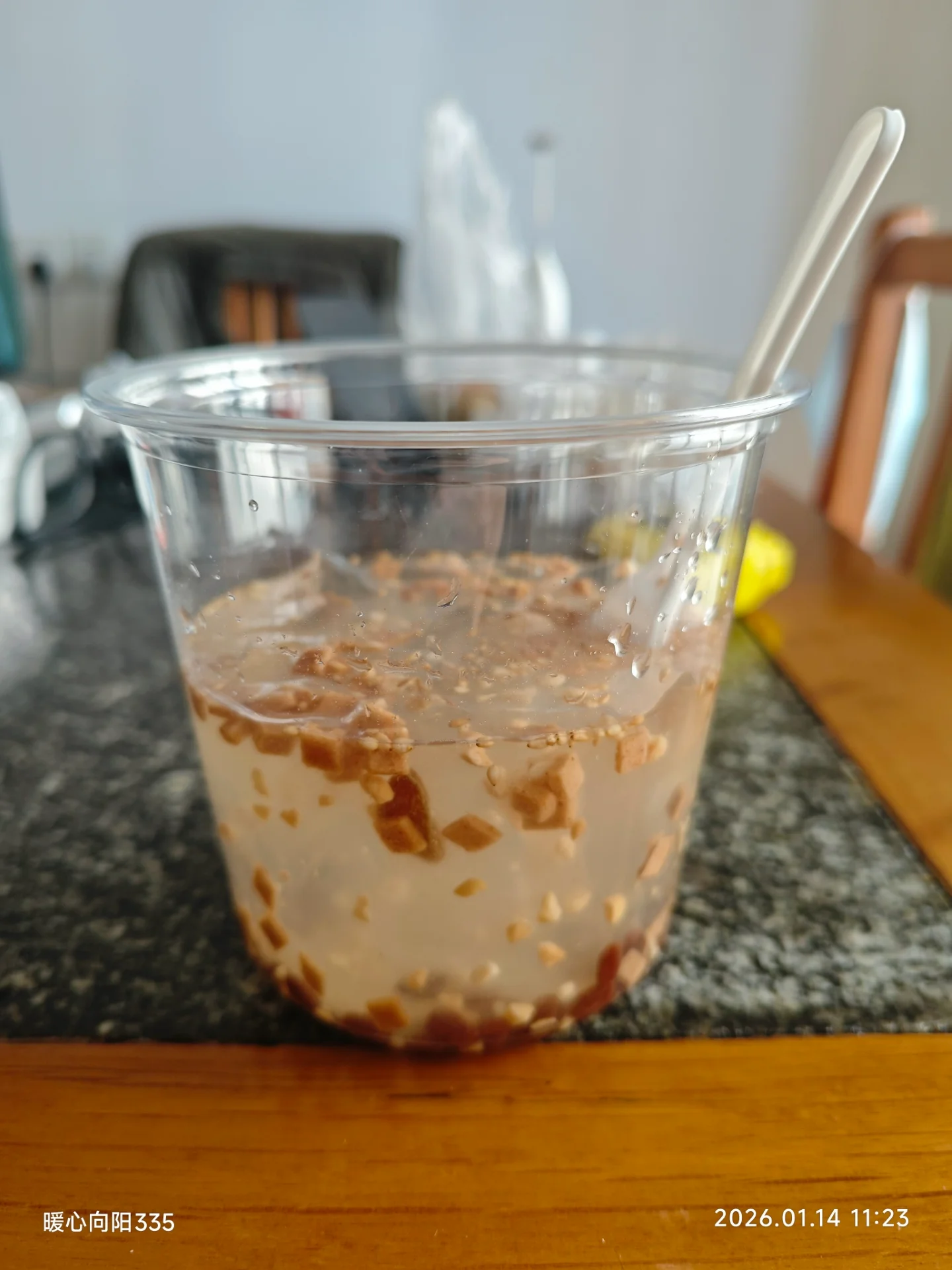 好奇怪的冰粉,味道还行,但比不上现做的,还有好几种口味,我这个海盐荔枝味的,我喜欢。