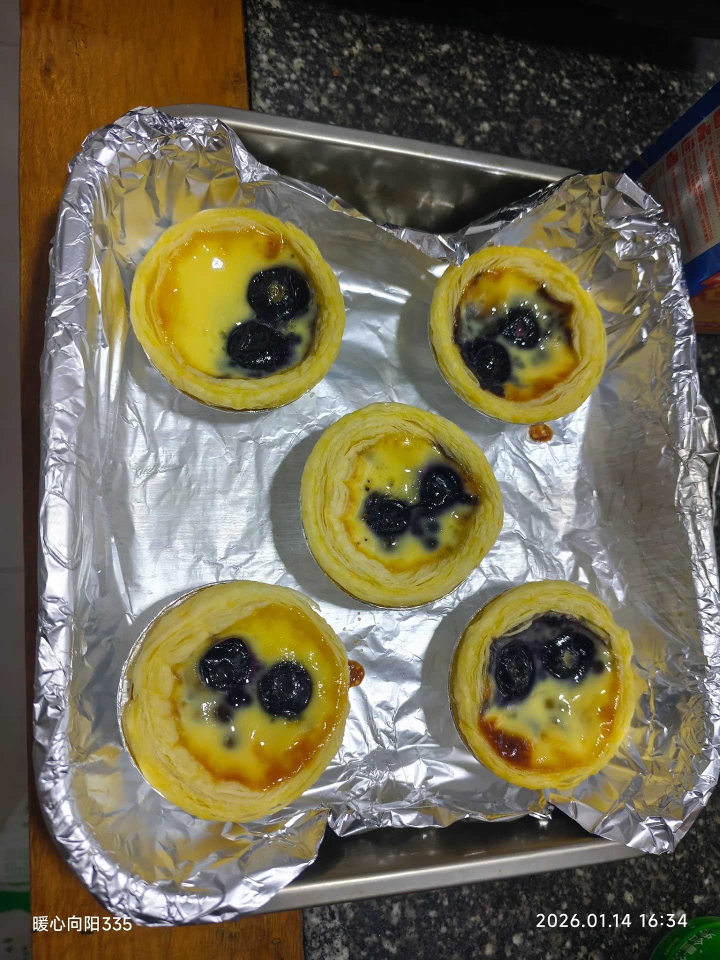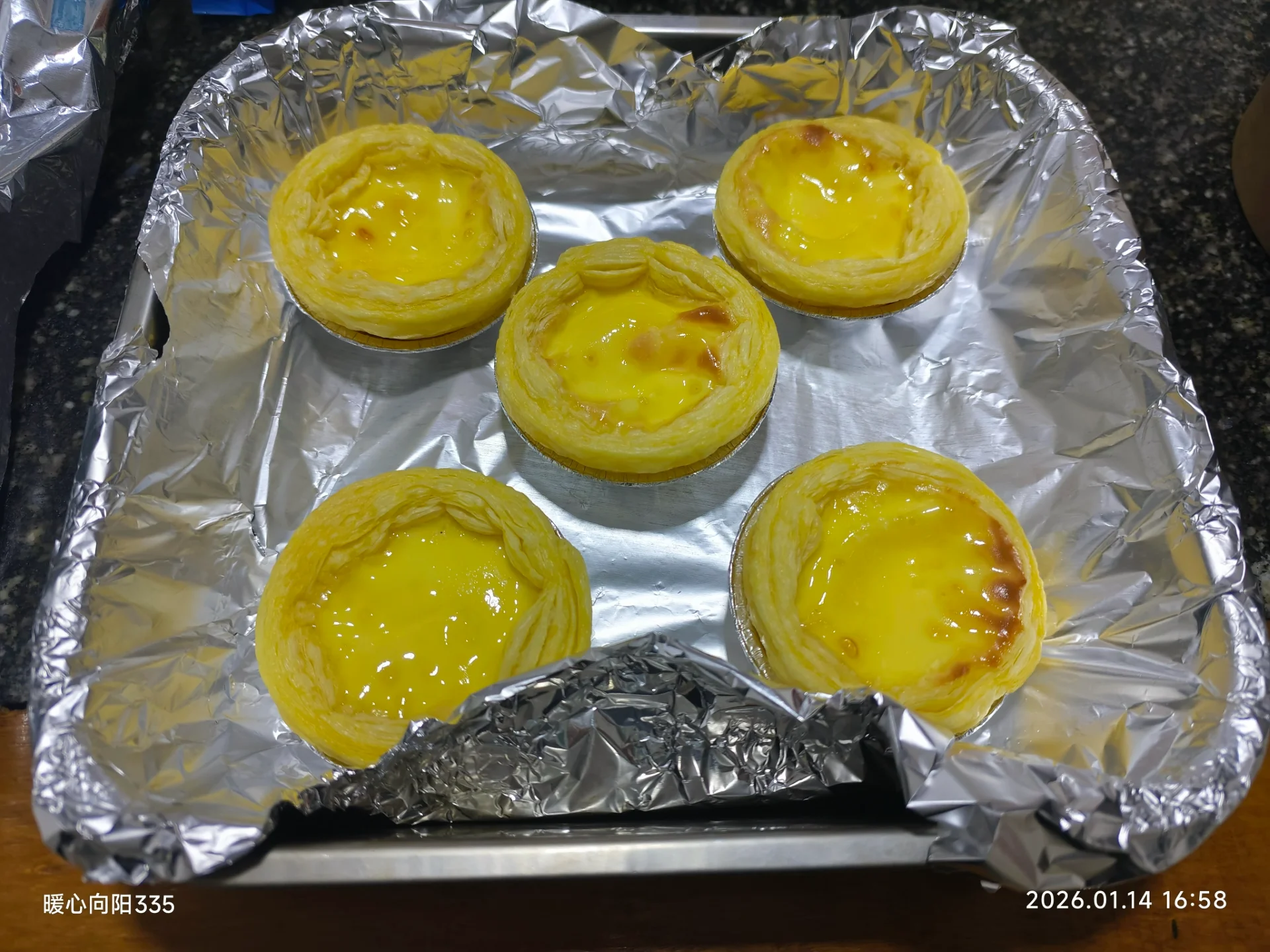 我堂姐把她的小烤箱带过来了,还买了速冻烤鸡翅、蛋挞材料,挺好吃的。