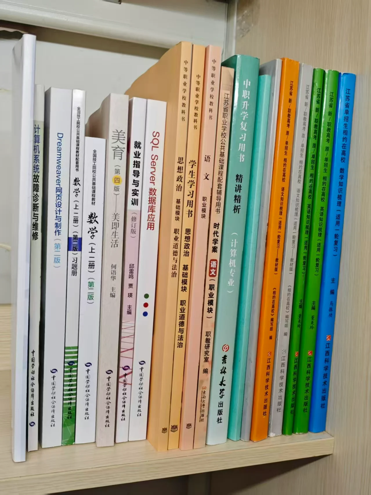 昨晚班会发了 11 本书,加上之前班主任让我们打印的习题册和上学期发的职教课本,加起来一共有 20 本——够多的!不过我们每周课少,像美育这种课职教班的可以不用上,爽!